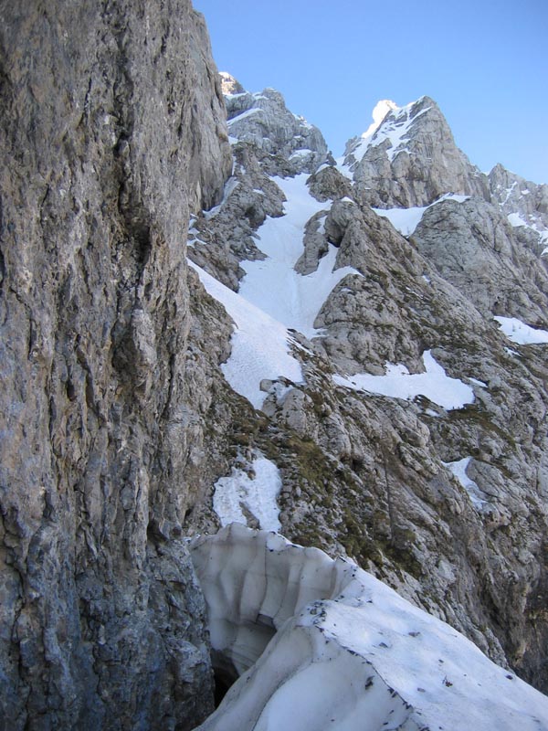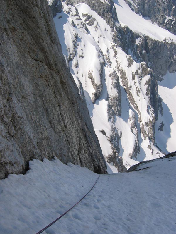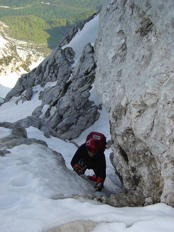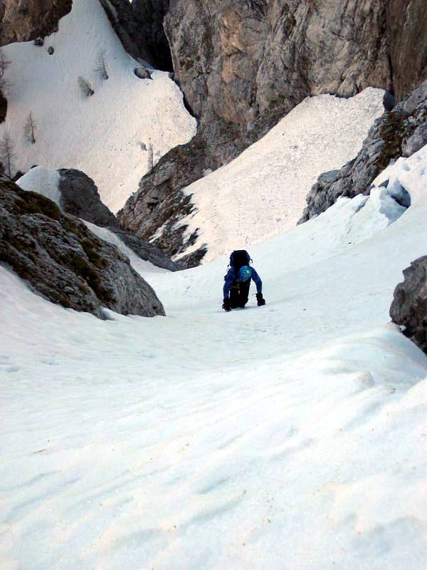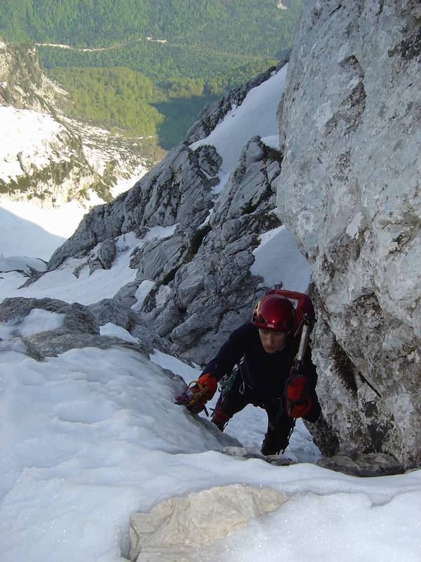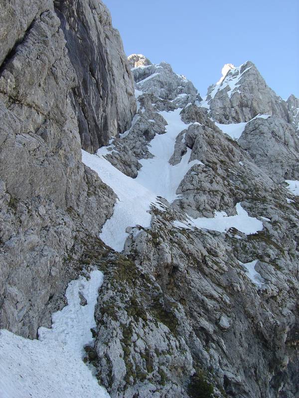 Smer Debelakove: 90°/IV, 45°-70°, 510 m